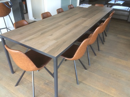 Tafel met ijzeren frame en stenen blad (parket look)